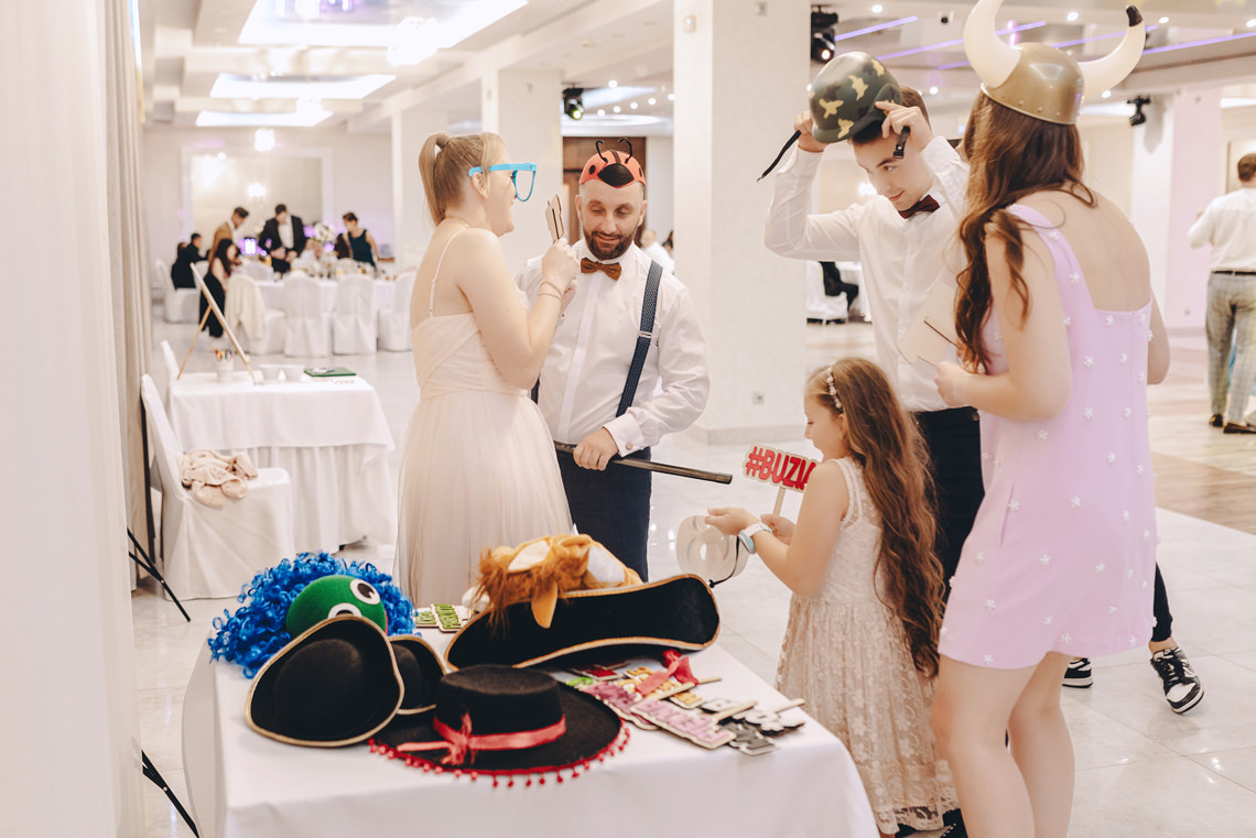 Standardowy pakiet wynajmu fotobudki obejmuje jej obsługę przez określony w umowie czas, nielimitowaną liczbę drukowanych zdjęć, zestaw zabawnych gadżetów, personalizację szablonu wydruku (np. dodanie imion i daty ślubu) oraz opiekę profesjonalnego animatora przez cały czas trwania zabawy.